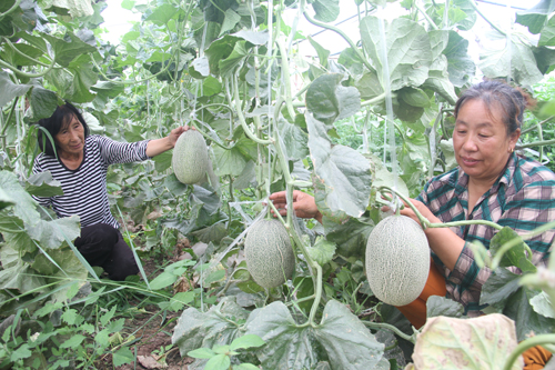 7月28日,原平市雙惠現(xiàn)代農(nóng)業(yè)示范園區(qū)的哈密瓜種植基地,鋼架溫室大棚里,藤蔓在架子上攀援,繁茂的枝葉間,一個(gè)個(gè)圓滾滾的小哈密瓜已經(jīng)探出了腦袋。近年來,該園區(qū)積極探索農(nóng)民工多元增收途徑,調(diào)整農(nóng)業(yè)種植結(jié)構(gòu)。這次引進(jìn)新疆哈密瓜種植取得成功,為我市發(fā)展高效農(nóng)業(yè)起到了示范作用。圖為工作人員正在查看哈密瓜長勢(shì),預(yù)計(jì)八月初可收摘上市。(褚震 攝)