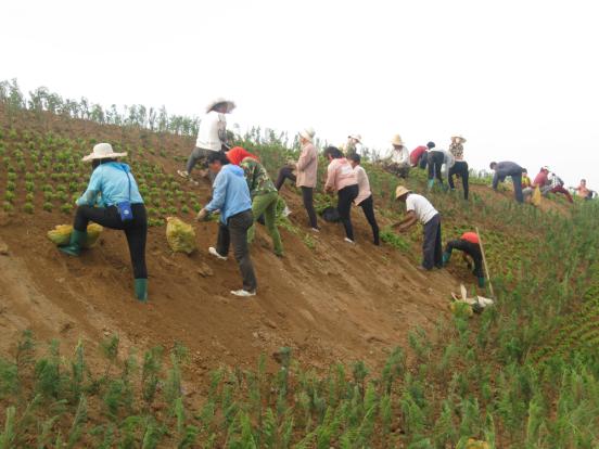 8月24日,河曲縣城北防護(hù)堤上植綠場(chǎng)面熱火朝天:數(shù)十名工人在堤上成排栽植爬地柏,坡面栽成菱形邊;菱形內(nèi)外栽植花草“三七景天”;園林綠化車輛跟進(jìn)澆水。