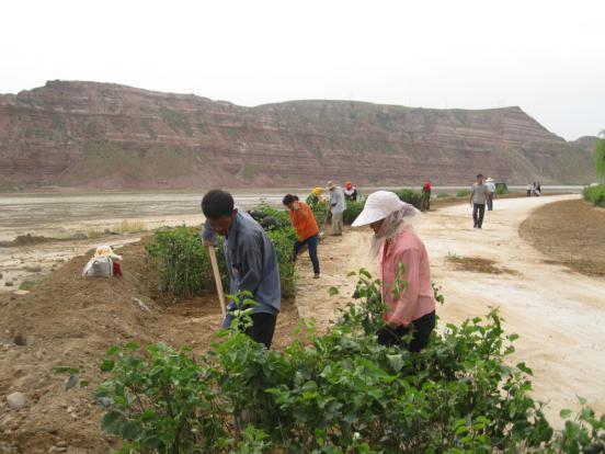 9月4日,河曲縣黃河岸邊20多名工人正在栽植丁香綠化帶。入秋以來,該縣對初具規(guī)模的濱河濕地公園優(yōu)化提質(zhì)和適當擴展,一方面增修了公園曲徑、小亭,一方面對公園邊緣進行補綠,在護河堤栽植爬地柏、三七景天,空擋地帶栽植丁香,進一步增加綠化面積,提升公園檔次和品位。據(jù)悉,該公園面積達450畝。(賈金理 攝)