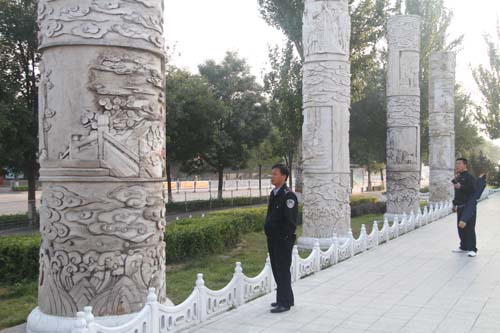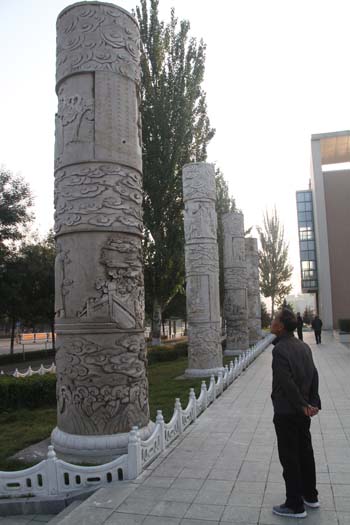 10月9日,原平市民在范亭文體廣場(chǎng)聚落的柱式雕塑前觀看愛(ài)國(guó)名將續(xù)范亭、東晉名士郝隆等16位名人紀(jì)念雕像。近年來(lái),該市著力打造文化強(qiáng)市,利用柱式雕塑像繪制歷史文化名人、抗日英雄等群體形象,營(yíng)造濃濃的文化氛圍。(褚震 攝)