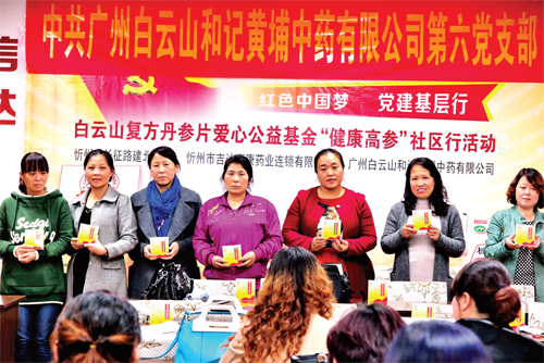 本報(bào)訊 10月21日,白云山和黃中藥公司復(fù)方丹參片愛心公益基金志愿者服務(wù)隊(duì)與忻州市吉達(dá)惠康連鎖藥店聯(lián)合主辦了“紅色中國(guó)夢(mèng)、黨建基層行”愛心公益活動(dòng),向社區(qū)居民贈(zèng)送了健康體檢卡及健康藥物禮包,并開展了一系列的黨建文化交流活動(dòng)。 據(jù)了解,2014年,白云山和黃中藥公司成立了白云山復(fù)方丹參片愛心公益基金,向全國(guó)招募志愿者服務(wù)隊(duì),呼吁全社會(huì)共同關(guān)愛老人,傳遞社會(huì)正能量。該公司堅(jiān)持“慢病管理、健康高參”的服務(wù)理念,在全國(guó)開展了千余場(chǎng)消費(fèi)者健康教育會(huì),針對(duì)慢病患者建立健康檔案,對(duì)慢病患者的健康進(jìn)行動(dòng)態(tài)管理與跟蹤,并提供專業(yè)的用藥指導(dǎo)及健康體檢等健康服務(wù),讓更多的人受惠。該公司在企業(yè)黨建方面是廣東省乃至全國(guó)的突出代表,公司黨委創(chuàng)新開展黨建工作,曾榮獲“全國(guó)先進(jìn)基層黨組織”榮譽(yù)稱號(hào)。圖為社區(qū)群眾領(lǐng)到了免費(fèi)贈(zèng)送的健康禮包和體檢卡。(魯明強(qiáng) 攝影報(bào)道) (責(zé)任編輯:李冬梅) |