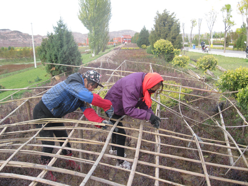 11月7日,河曲縣濱河濕地公園女工手推割草機(jī)割刈樹(shù)地的枯萎花草,顯得風(fēng)采奕奕。今年以來(lái),數(shù)十名女工撲下身子,與漢子們一道建設(shè)450畝濕地公園,一次又一次植綠、澆水、鋤草,近日還為綠籬色帶建“防寒屋”、為樹(shù)木穿“保暖衣”、收拾花境“殘局”,成為新建公園里四季美麗的風(fēng)景線(xiàn)。(賈金理 攝)