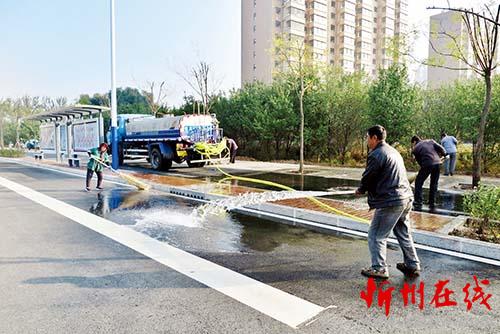 10月12日,在建設(shè)路北拓路段,工人們正在加班加點認(rèn)真清洗打掃道路。最近幾天,忻州城區(qū)新修道路和新改造道路建設(shè)工程相繼竣工通車,市市容環(huán)境衛(wèi)生管理處和市園林管理局組織人員及時清洗道路塵埃,處處呈現(xiàn)出街寬路闊潔凈新貌。魯明強 攝