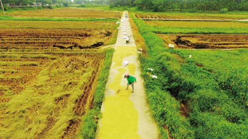 5月21日,海南省瓊海市嘉積鎮(zhèn)橋頭村農(nóng)民在曬谷子。當(dāng)日是二十四節(jié)氣中的小滿(mǎn),各地農(nóng)民抓時(shí)令忙生產(chǎn),田間地頭一派繁忙。據(jù)新華社 蒙鐘德 攝