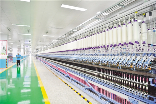 山東省鄒平縣魏橋紡織股份有限公司智能化車間里,12.5萬紗錠智能化生產(chǎn)線運轉有序,工作人員只需要觀察手中的智能設備就可以了解所有機器的運行狀況,原本需要10人完成的工作現(xiàn)在只需要1人。本報記者 高興貴攝