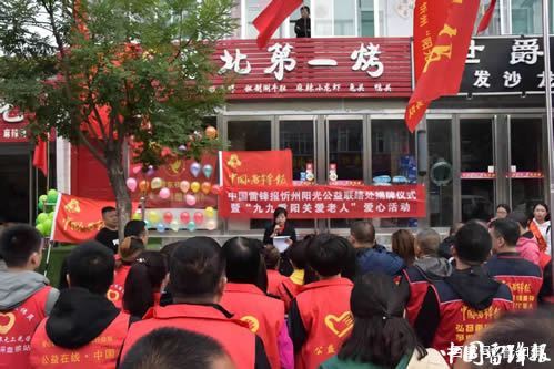 儀式上,中國雷鋒報忻州工作站副站長溫曉軍為陽光公益聯(lián)絡(luò)處揭牌,副站長李杰慧為陽光公益服務(wù)隊授隊旗。