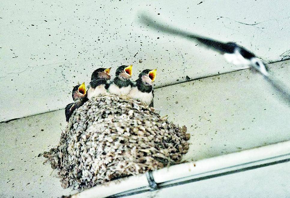 現(xiàn)在已不知道是誰最先發(fā)現(xiàn)這窩小燕子的出生了,反正,該單元的居民覺得這事挺好。路過燕子窩,抬頭望見小燕子偶爾露出來的腦袋,他們便能感受到片刻的輕松與愉悅。有居民高興地說:燕子家喜添新丁,我們大家都祝小燕子茁壯成長吧?。ㄓ浾?張國英)