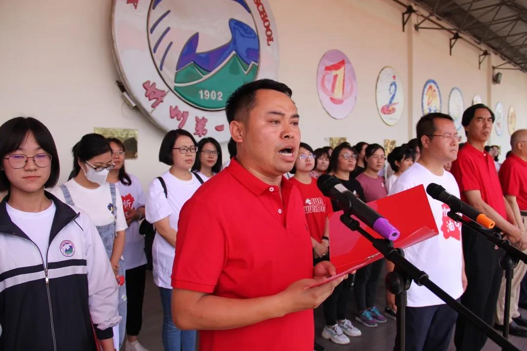 高三年級主任何強(qiáng)在儀式上發(fā)言