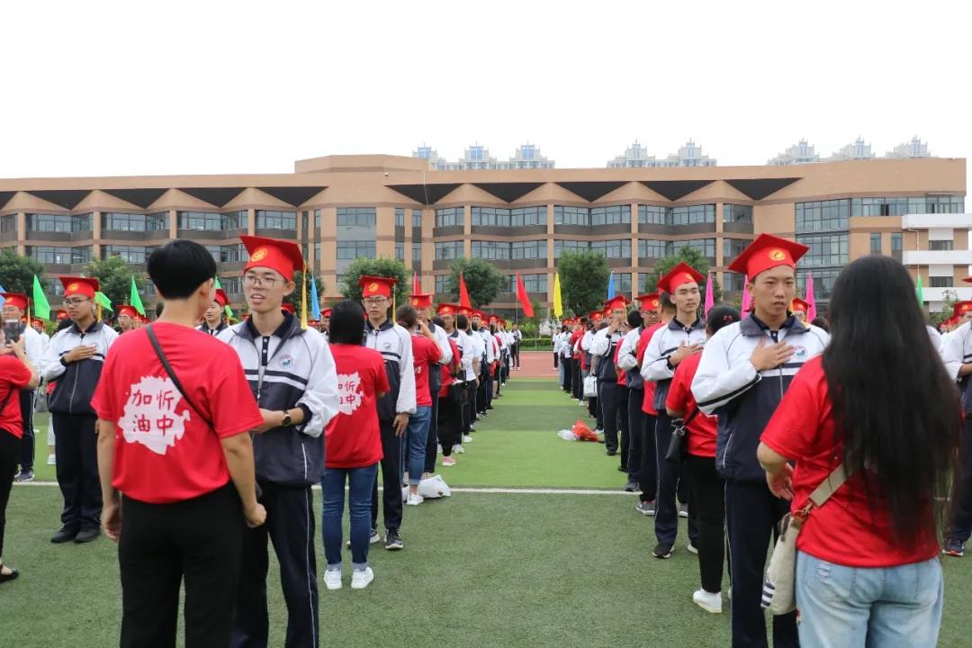 “少年智則國智,少年富則國富;少年強則國強,少年獨立則國獨立……”激昂奮進的聲音在北校區(qū)的操場上空回響,在全體高三學生《少年中國說》激情澎湃的誦讀聲中,本次大會正式開始。莊嚴的升旗儀式后,學生代表、教師代表和家長代表依次獻詞:好友同窗與共的奮斗時光,老師日復(fù)一日的悉心陪伴,父母無私無盡的付出關(guān)愛,在一句句溫情感人的獻詞中歷歷浮現(xiàn),激蕩心靈。