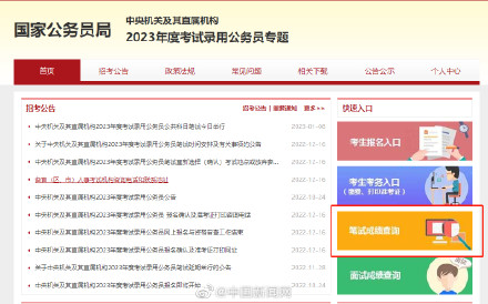 14日晚間,不少考生在網(wǎng)站曬出剛剛查到的2023國考筆試成績。一些網(wǎng)友反映2023國考專題網(wǎng)頁上分數(shù)查詢通道擁擠,網(wǎng)頁顯示“服務器繁忙”。今年1月8日,中央機關(guān)及其直屬機構(gòu)2023年度公務員考試公共科目筆試舉行。本次國考計劃招錄3.71萬人,152.5萬人實際參加考試,實際參加考試人數(shù)與錄用計劃數(shù)之比約為41:1。