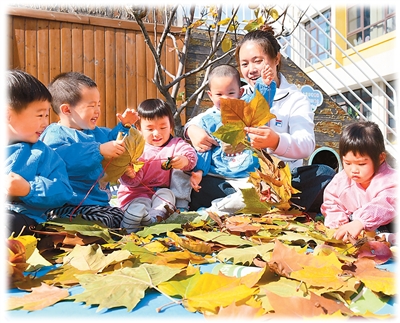 2025年11月6日,在山東省濟(jì)寧市任興托幼一體實(shí)驗(yàn)園,老師陪伴托育班的小朋友做游戲。新華社記者 郭緒雷攝