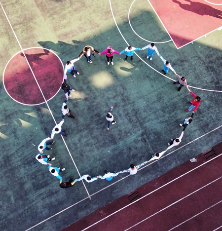 11月9日,貴州省遵義市鳳岡縣特殊教育學(xué)校,一名學(xué)生在教室里上課時(shí)對(duì)著照相機(jī)做心形手勢。