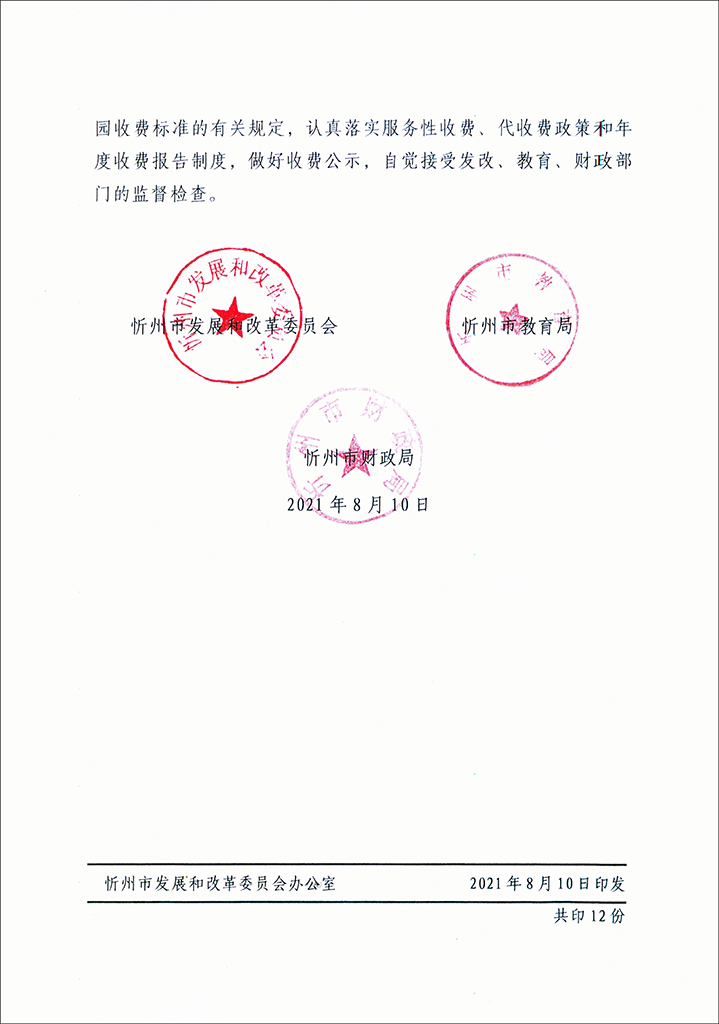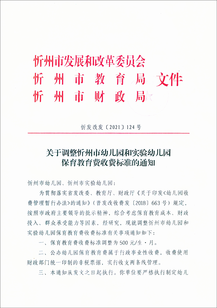 關于調整忻州市幼兒園和實驗幼兒園保育教育費收費標準的通知