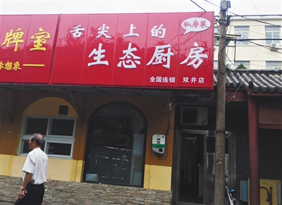 7月25日,北京朝陽區(qū)勁松一中南門西側(cè)的百度生態(tài)廚房雙井店,門口掛有標(biāo)牌。