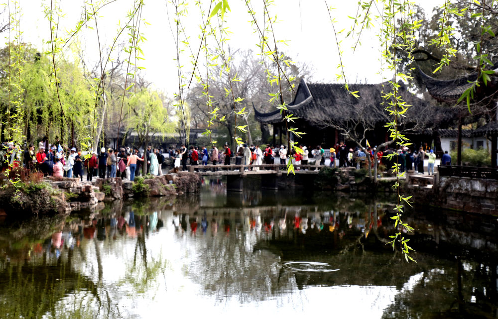 游客在江蘇省蘇州市古典園林拙政園觀光游玩(2023年3月15日攝)。新華社發(fā)(杭興微 攝) 山東淄博,工業(yè)老城因燒烤“出圈”:各地網(wǎng)民游客紛紛前來“趕烤”,人們在這一特色消費中感受齊魯大地的“好客文化”,更在美食文化與歷史文化的融合中感受一座城的人氣,一城人的文明。
