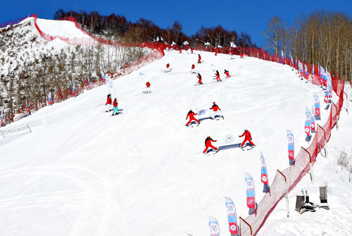 資料圖片:來自全國各滑雪場的代表在河北崇禮云頂滑雪場參加活動。新華社記者楊世堯攝