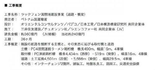 日本政府不僅參與了投資,同時日本工營、日本構(gòu)造橋梁研究所參與了橋梁設(shè)計,三井住友建設(shè)和兩家越南本土公司共同為施工方。