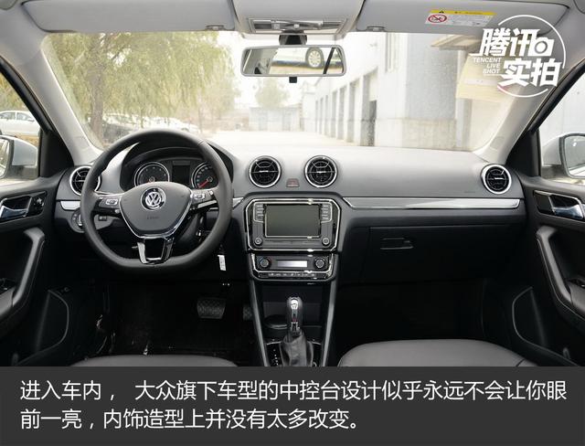 進(jìn)入車內(nèi), 大眾旗下車型的中控臺(tái)設(shè)計(jì)似乎永遠(yuǎn)不會(huì)讓你眼前一亮,內(nèi)飾造型上并沒有太多改變。全新三輻平底方向盤是最大改變,盤輻大小正好,握感也很不錯(cuò),鋼琴烤漆的飾條更是點(diǎn)睛之筆,兩側(cè)多功能按鍵可以控制多媒體和藍(lán)牙電話等功能。儀表盤的底紋有所改變,黑底白字清晰易讀,中央是單色行車電腦顯示屏。車內(nèi)空調(diào)出風(fēng)口造型有所調(diào)整,內(nèi)部構(gòu)造更加復(fù)雜。