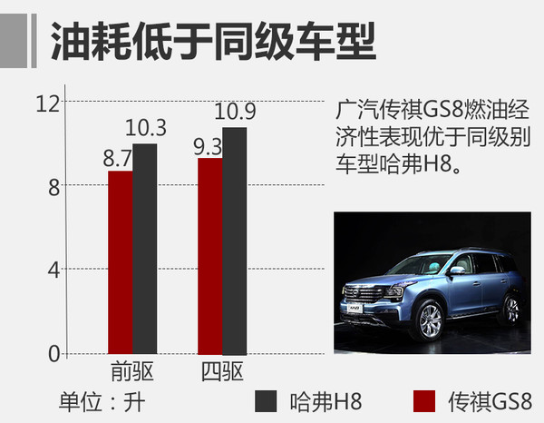 新車定位于中大型SUV,上市后將與哈弗H8等車型處于同一級別。油耗方面,通過與哈弗H8對比后發(fā)現(xiàn),新車兩驅(qū)與四驅(qū)車型在燃油經(jīng)濟性方面均具備一定優(yōu)勢。