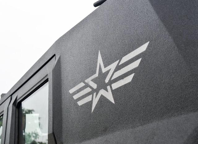 車身表面使用了亞光色涂裝,披上厚重的鋼板并經(jīng)過高溫噴砂處理,車窗采用了高強度復(fù)合玻璃,厚度比起一臺iPhone7還要厚。幾乎全車做過了防彈處理和碳纖維處理,側(cè)面還取消了C柱和D柱,換裝了具有一定防爆能力的輪胎,據(jù)說輪胎支持在全部破損的情況下勻速行駛。