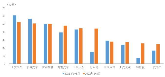 中新網(wǎng)9月26日電 據(jù)中國汽車工業(yè)協(xié)會(huì)統(tǒng)計(jì)分析,2022年1-8月,銷量排名前十位的SUV生產(chǎn)企業(yè)共銷售395.2萬輛,占SUV銷售總量的57%。