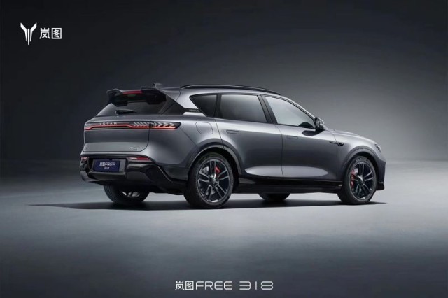 嵐圖FREE 318的車側與車尾也進一步“黑化”,運動化輪圈內(nèi)還采用了紅色制動卡鉗,此外,新車尾部激進的尾翼也為整體視覺效果增色不少,給人很強的視覺質感。