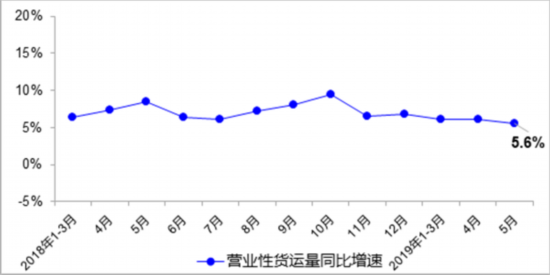 5月,完成營業(yè)性貨運(yùn)量46.5億噸,同比增長5.6%,其中公路貨運(yùn)量增長5.6%、水路貨運(yùn)量增長5.0%。郵政行業(yè)完成業(yè)務(wù)總量1309億元,同比增長30%。