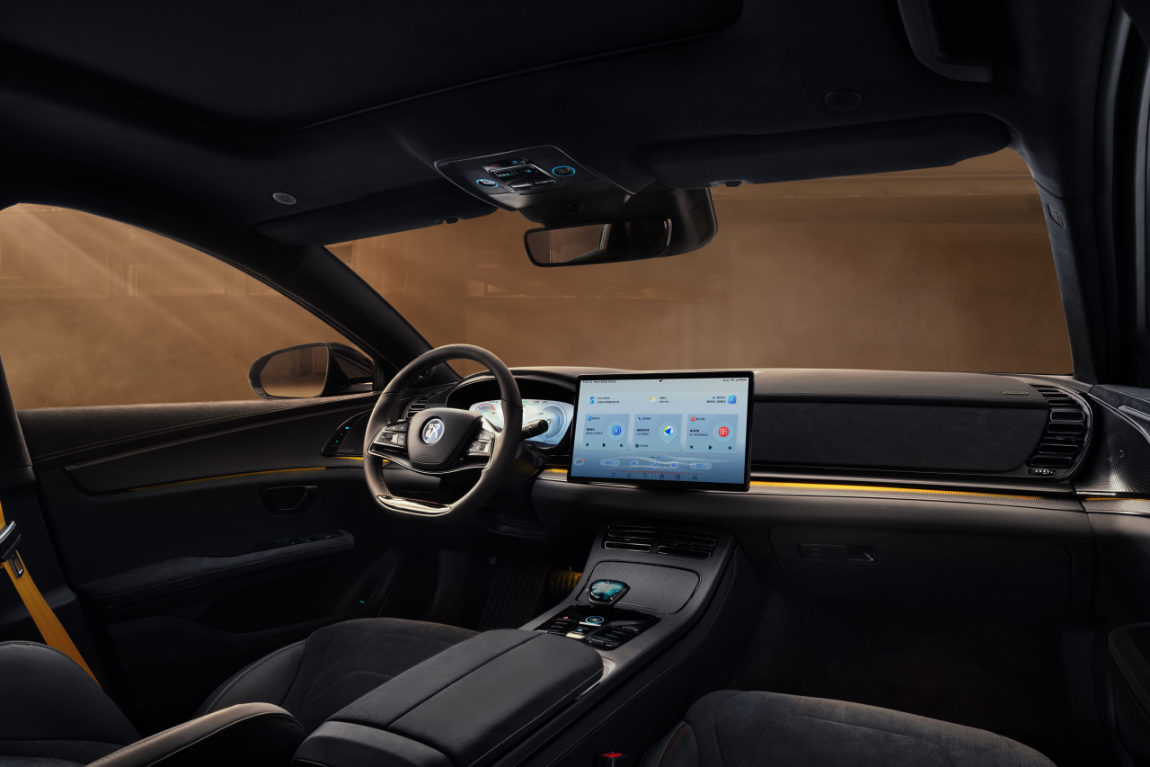 內(nèi)外相融,漢DM-p戰(zhàn)神版內(nèi)飾加入了一系列的運動元素與高檔用料,極黑高檔類麂皮包覆座椅、門板、副駕面板、中控扶手箱等,并輔以黑色碳纖維材料點綴,同時配有一體式運動座椅、金甲黃安全帶,整車內(nèi)飾運動感潮奢升級,與個性外觀、甲胄靈感配色相得益彰。