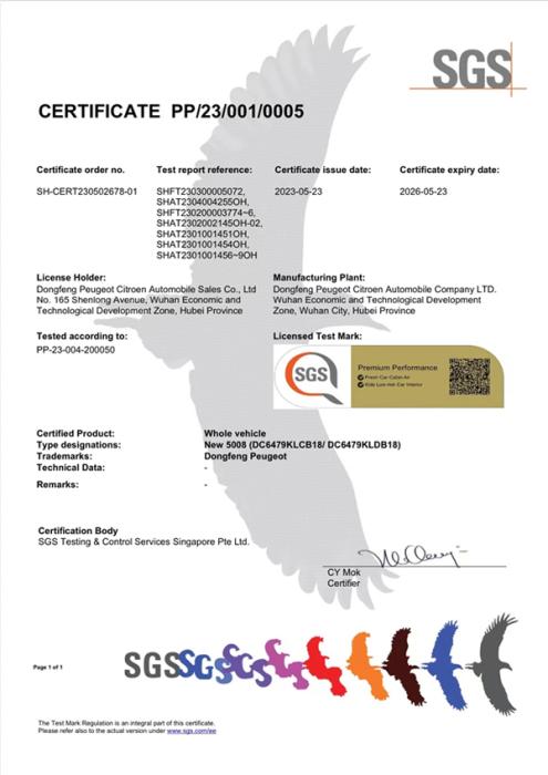 新5008成為汽車行業(yè)內(nèi)首個(gè)榮獲SGS金標(biāo)認(rèn)證的健康座駕