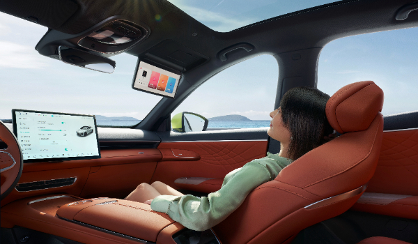 配置上,深藍(lán)S7搭載前排雙零重力按摩座椅,15.6英寸向日葵屏幕具有左右各15°的旋轉(zhuǎn)功能。智能模式下,顯示屏隨場(chǎng)景偏轉(zhuǎn),可實(shí)現(xiàn)迎送賓場(chǎng)景。副駕區(qū)域創(chuàng)新性配備12.3英寸超感智慧屏,可配合副駕零重力座椅的傾斜角度調(diào)整,方便副駕乘員以舒適的躺姿觀看屏幕播放內(nèi)容,放松身心。除此之外,深藍(lán)S7還搭載高通8155芯片車機(jī)系統(tǒng)、AR?HUD全息式增強(qiáng)現(xiàn)實(shí)系統(tǒng)、3D全息人臉登錄等高價(jià)值配置。