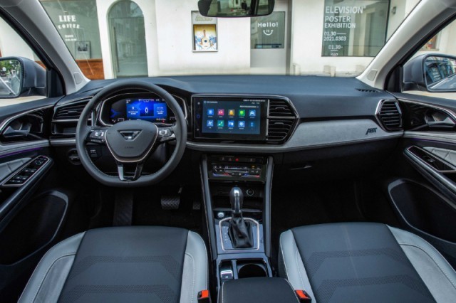 內(nèi)飾部分,捷達(dá)VS7 ABT版采用黑灰雙色設(shè)計(jì),在中控臺(tái)右側(cè)帶有ABT標(biāo)識(shí)。此外,其座椅頭枕也加入了ABT專屬設(shè)計(jì)元素。