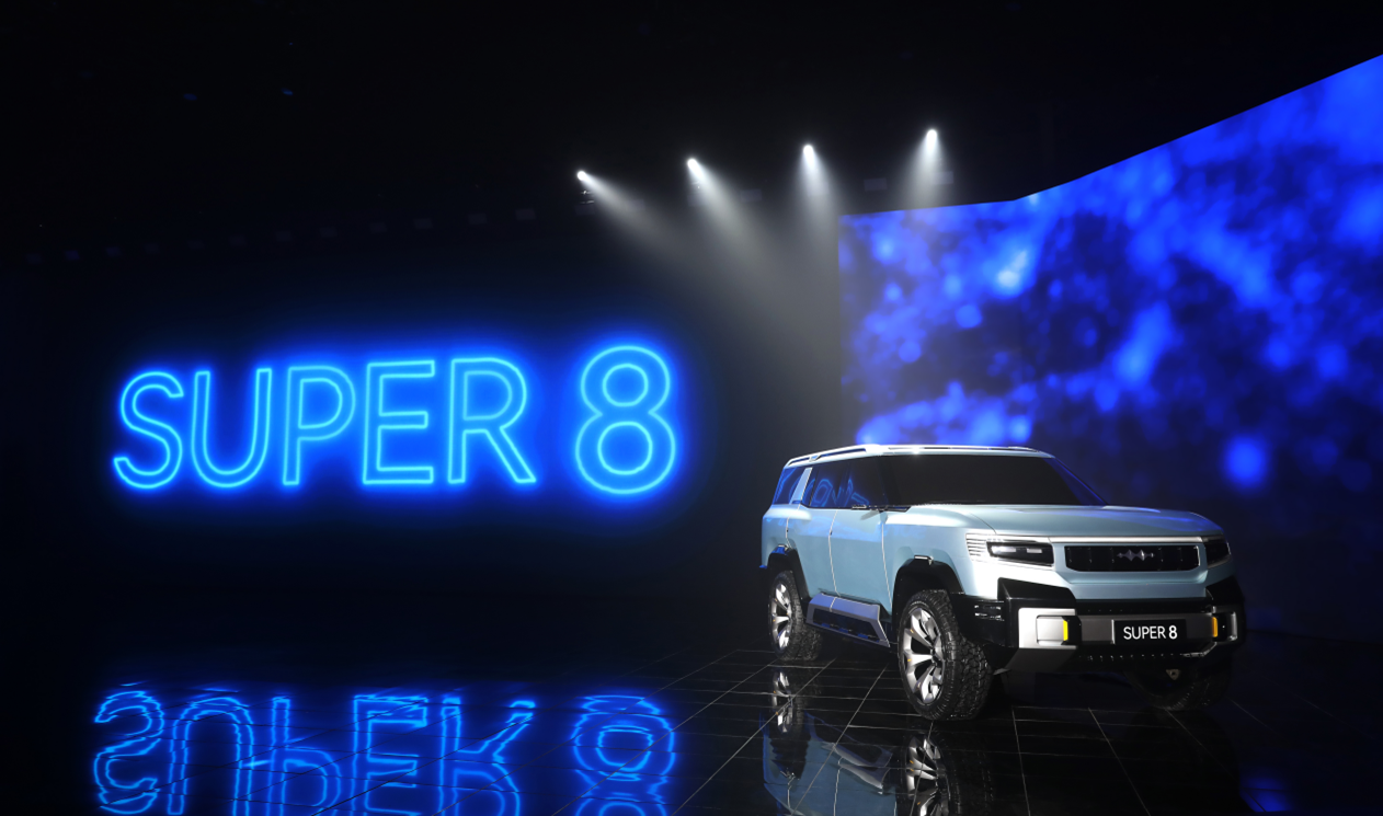 豹8車型的概念車SUPER 8,則展示了方程豹對硬派SUV的未來探索。SUPER 8在設(shè)計(jì)上不再拘泥于傳統(tǒng)的方盒子設(shè)計(jì),而是從科幻的未來戰(zhàn)場獲取靈感,將賽博工業(yè)美學(xué)與肌肉感相融合,營造出強(qiáng)壯、寬大的體量和高級(jí)、純粹的車身形面;咬合式鎖扣設(shè)計(jì)環(huán)繞整車,體現(xiàn)了底盤與車身的上下分體式連接,又展現(xiàn)出極強(qiáng)的結(jié)合性、穩(wěn)固性與保護(hù)感,讓用戶自信馳騁、自由穿越、自在征服。