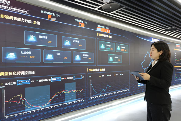 工作人員通過國家電網(wǎng)智慧車聯(lián)網(wǎng)平臺監(jiān)測負荷聚合調控情況。受訪者供圖