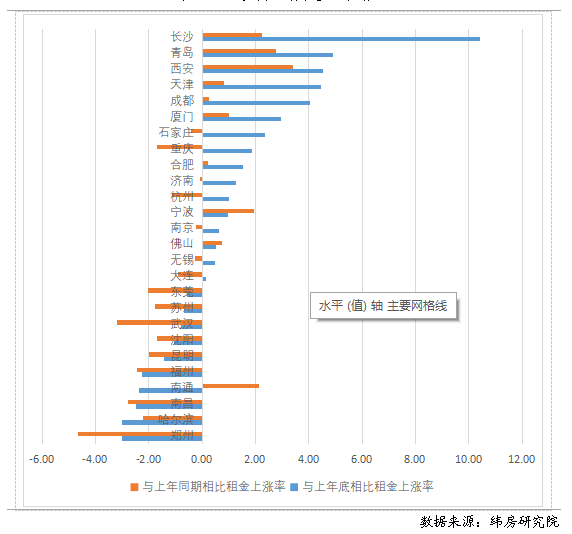 分城市來(lái)看,上半年多數(shù)城市住房租賃市場(chǎng)活躍度同比提高,但租金還未回升至去年同期水平。