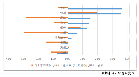 圖11 二線城市住房租金變動(dòng)情況(%)