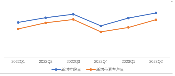圖4 重點(diǎn)40城新增掛牌量、新增帶看客戶量走勢(shì)