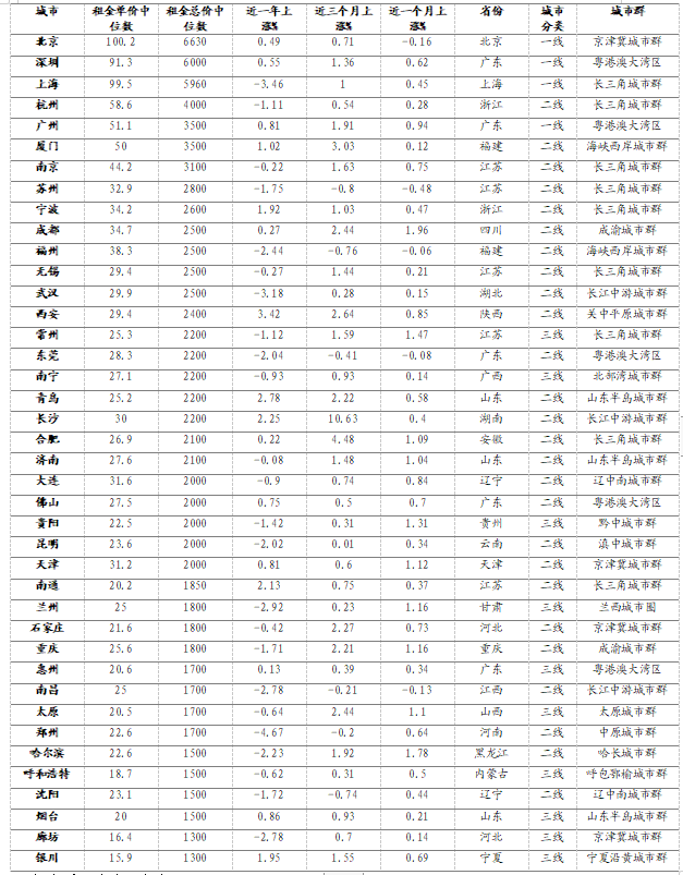 2.租金水平相對(duì)平穩(wěn),二季度季節(jié)性小幅上漲,但上半年總體略低于去年同期租金水平