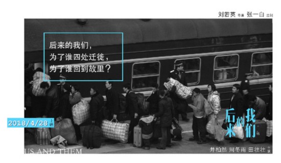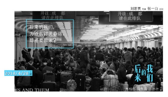 此次系列海報以紀實風格的黑白圖片,搭配著“為什么只有過年,才想到回家?〞,“為什么討厭春運,卻還要回家?”等令人深思的質問文案,在導演劉若英與監(jiān)制張一白聯(lián)手發(fā)力下,不僅讓井柏然周冬雨置身真實春運場景,成為了千千萬萬普通回家人群中的一員,同時也讓普通人成為了此次系列海報的主角。突顯出電影現實主義氣質。正值春節(jié)將至,春運高峰,人們紛紛踏上回家的路的時刻,電影《后來的我們》系列海報更是觸及正在趕路的觀眾內心深處關于春運的隱痛和感動。