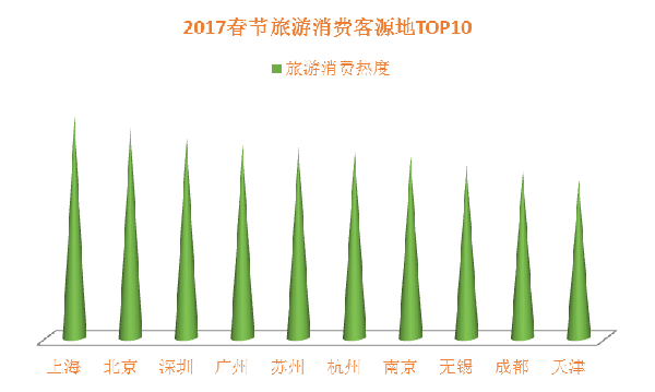 整體的客源分布方面,上海、北京、深圳、廣州、蘇州、杭州、南京、無錫、成都、天津十個城市的春節(jié)出游人數(shù)最多(截止《報告》發(fā)布時的預(yù)訂數(shù)據(jù))。