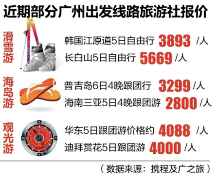 數(shù)據(jù)顯示,越來(lái)越多的出境游線路和國(guó)內(nèi)游價(jià)格相差無(wú)幾,不少線路更是“平到笑”。比如,羊城晚報(bào)記者根據(jù)攜程及廣之旅報(bào)價(jià)發(fā)現(xiàn),近期一些廣州出發(fā)到韓國(guó)滑雪自由行5日價(jià)格為3893元,而到長(zhǎng)白山滑雪5日行的價(jià)格為5669元;廣州到三亞與到泰國(guó)普吉島海島游自由行價(jià)格均為3000元左右;廣州到迪拜5日賞花游跟團(tuán)游4000元,廣州到華東5日跟團(tuán)游4088元;廣州到越南、柬埔寨出境線路跟團(tuán)游普遍只需兩三千元,低過不少國(guó)內(nèi)游線路。