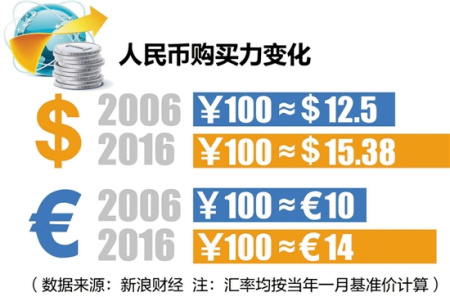 出境游人數(shù)11年增長(zhǎng)2.5倍,與中國(guó)人均GDP增速不謀而合。而人民幣匯率從2006年100元人民幣約兌換10歐元,上升至2016年約兌換14歐元,上升近50%。人民幣兌美元也從2006年的100元人民幣約兌換12.5美元,上升至2016年約兌換15.38美元,上升近25%。人民幣更值錢、錢袋子更鼓讓國(guó)人出境游更有底氣。