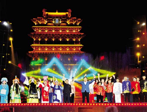 作為主場(chǎng)的運(yùn)城市,用絳州鼓樂(lè)這一傳承千年的世界級(jí)非物質(zhì)文化遺產(chǎn)開(kāi)場(chǎng),電視連續(xù)劇《三國(guó)演義》關(guān)公扮演者陸樹(shù)銘威嚴(yán)亮相,以關(guān)公形象表達(dá)運(yùn)城歷史傳統(tǒng)文化。