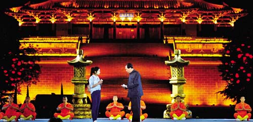 作為客場(chǎng)競(jìng)演城市,我市節(jié)目精心策劃,抓住了城市的靈魂,以“心靈之舟”為主題思想,多角度展示了我市的文化旅游特色。在第一階段展示中,高清影視資料向觀眾推介了五臺(tái)山、雁門關(guān)等大美山河,吊足了觀眾的味口。4名原生態(tài)歌手和20名小朋友齊唱《美麗忻州心靈之舟》,營(yíng)造出寧?kù)o的開(kāi)場(chǎng)氛圍。緊接著,毛澤東特型演員張瑞奇的出現(xiàn),將全場(chǎng)帶入第一個(gè)高潮,毛澤東與五臺(tái)山的歷史淵源點(diǎn)燃紅色激情,我市既展示出了名山秀水的妖嬈,又漂亮地打出了紅色旅游這張牌。宣講“忻州,我們的心靈之舟”這一主題的同時(shí),更是將凈化心靈、激蕩心靈、洗滌心靈、愉悅心靈、陶冶心靈這5大內(nèi)容融入到節(jié)目中,完整地傳達(dá)“我們的忻州,是蕩滌人們心靈的忻州,是放飛人們夢(mèng)想的忻州”這一主題思想。第一階段競(jìng)演結(jié)束,鳳凰網(wǎng)點(diǎn)評(píng)嘉賓將支持票投給了忻州,因?yàn)樾弥菔莻€(gè)令她動(dòng)心的地方。就連著名表演藝術(shù)家馬德華先生也被忻州的名山秀水所感染,他激情點(diǎn)評(píng):“忻州令人魂?duì)繅?mèng)繞?!眻D為市委常委、常務(wù)副市長(zhǎng)趙志堅(jiān)傾情講述,撼動(dòng)全場(chǎng)第二階段的展演,圍繞“產(chǎn)業(yè)轉(zhuǎn)型升級(jí)和旅游脫貧致富”,我市以建設(shè)蘆芽山為故事背景,蘆芽山掌門常洪睿講述了他致力打造智慧化旅游景區(qū)的故事。