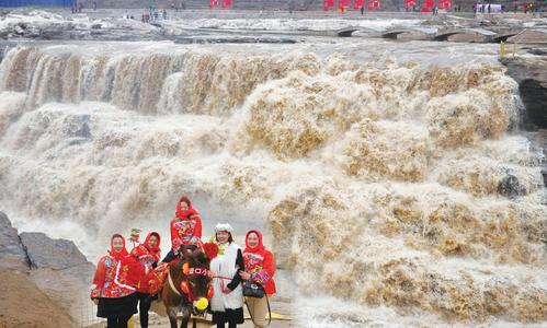 3月6日,游客在山西吉縣黃河壺口瀑布游覽觀瀑。近日,受氣溫回暖和上游融冰開河速度加快的影響,吉縣黃河壺口瀑布水量明顯增大,氣勢磅礴,聲震天宇,吸引了眾多游客。(呂桂明 攝影報道)