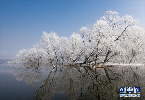 1月13日,天津市薊州區(qū)出現(xiàn)霧凇景觀,樹木仿佛披上了銀色盛裝,美如畫卷。 新華社發(fā)(王廣山 攝)