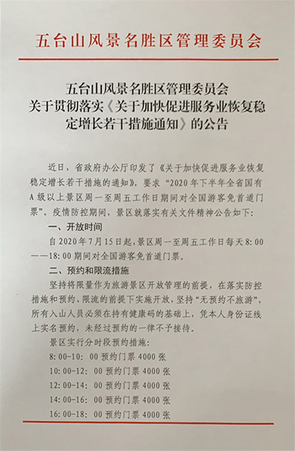 五臺山風景名勝區(qū)管理委員會關于貫徹落實《關于加快促進服務業(yè)恢復穩(wěn)定增長若干措施通知》的公告