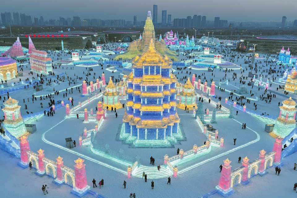 12月17日,游客在哈爾濱冰雪大世界園區(qū)游玩。當(dāng)日上午10時(shí),第二十七屆哈爾濱冰雪大世界正式開(kāi)園迎客。園區(qū)占地面積達(dá)120萬(wàn)平方米,總用冰用雪量突破40萬(wàn)立方米,以歷屆之最的規(guī)模,打造一座冰天雪地的“童話(huà)世界”。