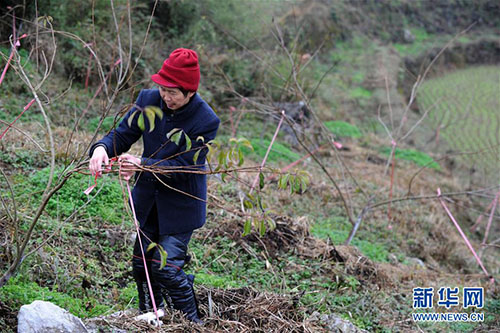余啟良在管護村里的果樹(2018年12月21日攝)。 新華社發(fā)(楊文斌 攝)