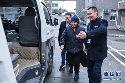 李耀進(jìn)(右)在杭州市救助管理站送一名需要被救助的老人去車站乘車回家(2018年12月27日)。 新華社記者 徐昱 攝