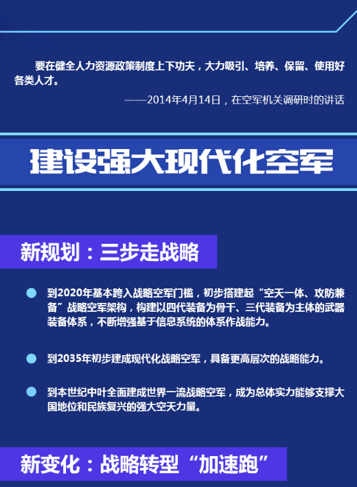 【聯(lián)播+】5年前的4月14日,中共中央總書記、國家主席、中央軍委主席習近平專程到空軍機關調研空軍建設和軍事斗爭準備,代表黨中央、中央軍委向空軍全體官兵致以誠摯的問候,強調要加快建設一支空天一體、攻防兼?zhèn)涞膹姶笕嗣窨哲姡瑸閷崿F(xiàn)中國夢、強軍夢提供堅強力量支撐。